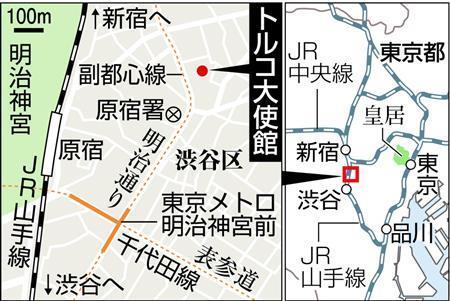 東京都渋谷区神宮前のトルコ大使館周辺で25日、トルコ総選挙の在外投票で集まった人が乱闘となり、警察官2人を含む12人が負傷した。乱闘は断続的に起き警視庁は急遽(きゅうきょ)、機動隊員を投入して付近を交通規制した。騒ぎは午前中にほぼ収まったが、投票は夜まで行われたため厳戒態勢が続いた。トルコ人と、クルド系トルコ人のグループがトラブルになった可能性があり、警視庁は乱闘の経緯や背景について慎重に調べている。
