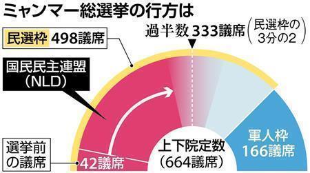NLD幹部は産経新聞社に、独自調査に基づき、改選議席の80%を獲得するとの見通しを示した。連邦選挙管理委員会による投票結果の確定までには2週間近くかかるが、NLDの集計通りなら同党が単独で大統領を選出し、政権交代が実現することになる。