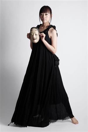 青木涼子の肩書は、能アーティスト。能楽師ではなく、あまり聞き慣れない。能と、細川俊夫やエトベシュら現代音楽作曲家の作品とコラボレーションを行い、能楽の枠を超えて活動している。その活動は、能面を持った写真を見てもらえば、何となく想像できるだろう。