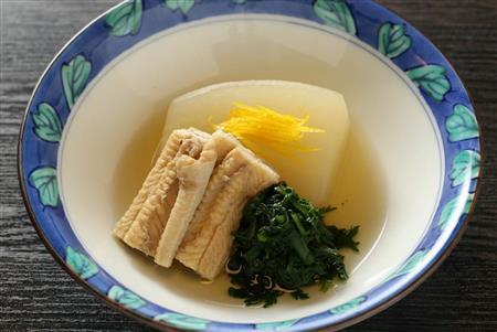 その伏水を使いこなすことで、コンブやカツオ節、干しシイタケ、煎り大豆、グジ(甘ダイ)やフグのアラ、カニの丸ガラ、スッポンなどから最高のだしがひけるという。