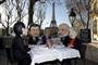 議長を務めた国連気候変動枠組み条約第21回締約国会議(COP21)でパリ協定を採択し、拍手を受けるフランスのローラン・ファビウス外相。左は国連気候変動枠組み条約事務局のクリスティアナ・フィゲレス事務局長=2015年12月12日、フランス・首都パリ郊外(ロイター=共同)【拡大】