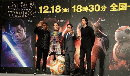 18日から世界一斉公開される米人気映画シリーズの最新作「スター・ウォーズ/フォースの覚醒」(3部作の第1章)のJ.J.エイブラムス監督(49)と、ヒロイン役の英女優、デイジー・リドリー(23)ら俳優陣3人が来日、11日、千葉県浦安市内のホテルで行われた会見に臨んだ。大の親日家としても知られるエイブラムス監督は「私が日本が大好きなように、日本の皆さんにもこの映画を好きになってほしい」とアピールした。
