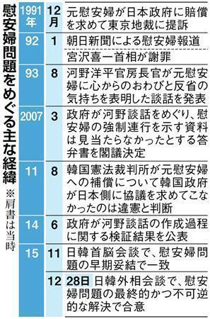 両氏は会談後、共同記者発表で合意内容を公表。岸田氏は「軍の関与の下に多数の女性の名誉と尊厳を傷つけた。日本政府は責任を痛感している」と述べ、「安倍晋三首相は心からおわびと反省の気持ちを表明する」と説明。