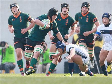 第95回全国高校ラグビー大会第5日は3日、東大阪市の花園ラグビー場で準々決勝4試合が行われ、2連覇を目指す東福岡が大阪桐蔭(大阪第2)を15-8で下し、4強入りを決めた。2大会ぶりの優勝を狙う東海大仰星(ぎょうせい、大阪第1)は記念枠で出場の京都成章(近畿)に17-10で競り勝った。石見智翠館(いわみちすいかん、島根)は関西学院(兵庫)に33-8で快勝し、島根勢として初の準決勝進出。桐蔭学園(神奈川)は天理(奈良)を31-12で破り、ノーシード校は姿を消した。