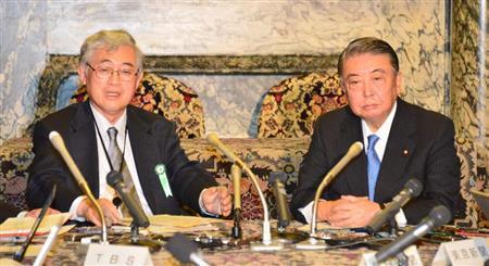 答申を提出し記者会見する衆院選挙制度調査会の佐々木毅(たけし)座長(左)と大島理森(ただもり)衆院議長=2016年1月14日午後、国会内(斎藤良雄撮影)【拡大】