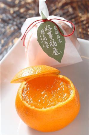 池波正太郎が愛した「好事福盧(こうずぶくろ)」(470円)は、和歌山・有田のみかんをふんだんに使った11~3月中旬の季節限定のゼリー。「酔いにかわいた口中へすべりこむときの旨さは、たとえようもなかった」(「むかしの味」から)とあるように、果実の甘さをそのままにあっさりとした味わいに仕上げているという。