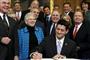 米下院監視・政府改革委員会の公聴会に臨む医薬品企業チューリングの前最高経営責任者(CEO)、マーティン・シュクレリ氏(中央)。強欲むき出しの不遜な態度は、さらに国民の怒りを買った=2016年2月4日、米国・首都ワシントン(ロイター)【拡大】