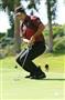 18番でバーディーを決め、ギャラリーの声援に応える松山英樹。通算6アンダーの7位に浮上=2016年2月19日、米カリフォルニア州パシフィックパリセーズのリビエラCC(共同)【拡大】