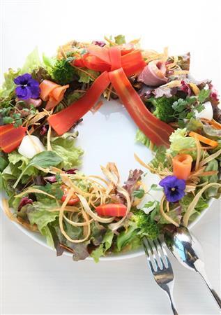 朝はサラダが食べ放題のモーニングセット、昼はデリ(総菜)スタイルのランチ、夜はコースやアラカルト(単品料理)が楽しめる。いずれも京都府内産の京野菜を中心としたメニューとなっている。