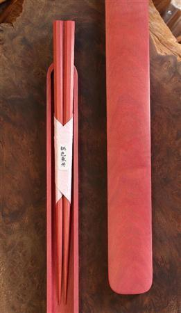 クロウメモドキ科の桃色象牙(ピンクアイボリー)の箸(1万5500円)、箸箱3万円