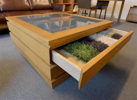 さまざまな方向から引き出しが出てくるユニークなソファーテーブル(21万630円)