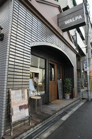 古書店のような外観のWALPA_STORE_OSAKA。木目の壁は壁紙が貼られている=2014年2月21日、大阪市西区
