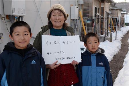 震災で自宅が全壊し、今は仮設住宅に。ハウスや農業機具も流され、イチゴ栽培からの引退を決断。斉藤まつ子さんは「家族全員で囲める大きな食卓がないのが残念です。少しでも早く、元の家のあった場所に戻ることを励みに暮らしていきたい」と胸の内を漏らした=2014年2月10日、宮城県亘理郡亘理町(鴨川一也撮影)