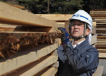 震災から3年。現在は岩手県一関市で生活する小野寺松一さんは、昼は森林組合の運営する製材所で働き、夜は高校の非常勤講師を務める。今年中に気仙沼に家を建てて帰ってくる予定という=2014年2月24日、宮城県気仙沼市(植村光貴撮影)