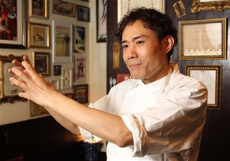 シェフの久保正樹さん。食材を余すところなく使うリヨンの伝統料理は、知れば知るほど奥深いという=2014年3月26日、京都市中京区(恵守乾撮影)