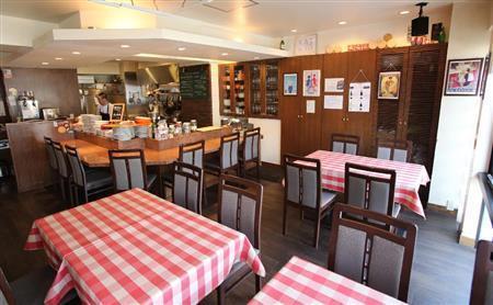 テーブルとカウンター席のアットホームな店内=2014年4月8日、京都市中京区(恵守乾撮影)