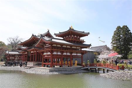 修復工事を終え、かつての輝きを取り戻した平等院鳳凰堂=2014年4月17日、京都府宇治市(恵守乾撮影)