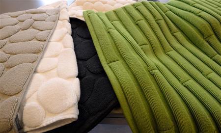 鈴木マサルさんが愛媛・今治の「吉井タオル」と手がけたバスマット。竹柄の「chikurin」や石柄の「ishikoro」など、あえて硬質な感触にこだわりヒット。大は3800円、小は2200円(いずれも税別)