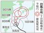 台風8号が接近し、沖縄県宮古島市の高野漁港近くに打ち寄せる波=2014年7月7日午後5時8分(共同)