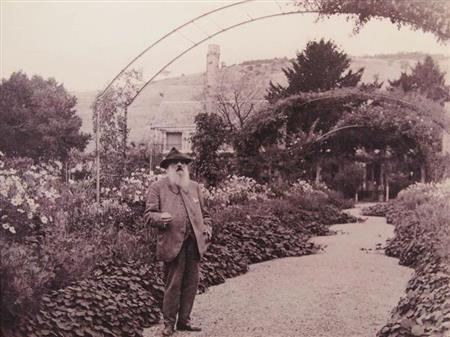 児島虎次郎が撮影した庭の前にたたずむクロード・モネ(1840年~1926年、「モネの庭」より、提供写真)
