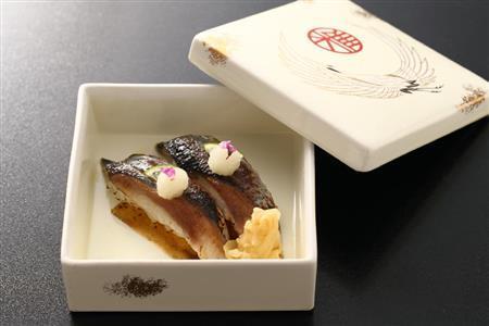 ほんのり香ばしさを感じさせるサンマの炙りにぎり=2014年9月22日、京都市左京区(恵守乾撮影)