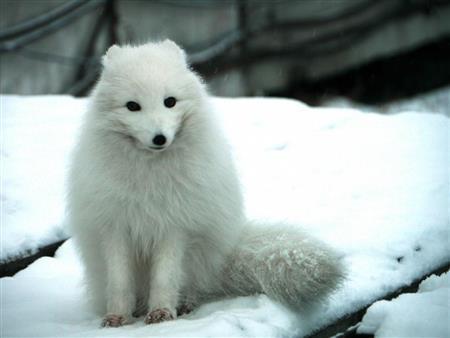 ピラミーデンの住人は、ガイドたちとホッキョクギツネ。観光客の方をじっと眺めていた=2014年10月16日、ノルウェー・スバルバル諸島のスピッツベルゲン島(内藤泰朗撮影)
