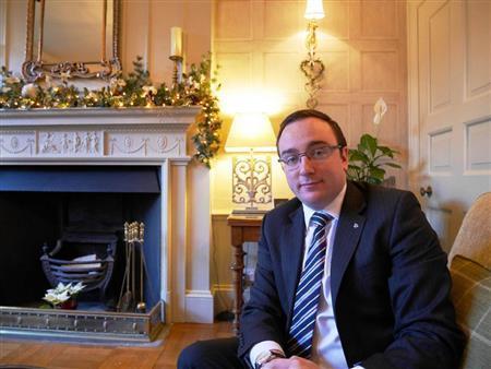 アンバリー城の支配人、マシュー・ドリンクウォーターさん。28歳の支配人だ=2014年12月29日、英国・サセックス(内藤泰朗撮影)