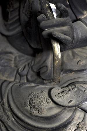 宋朝様式を伝える如意輪観音像の衣の文様=2015年2月7日、神奈川県鎌倉市西御門の来迎寺(渡辺照明撮影)