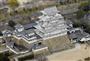 姫路城大天守前で、「拡張現実(AR)」の技術によってタブレット端末に表示された武士の映像=2015年3月18日午前、兵庫県姫路市(共同)