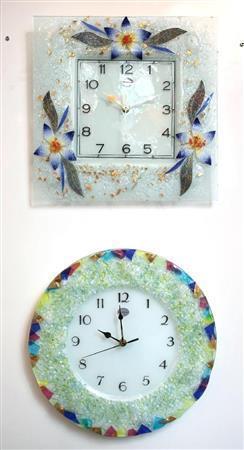 売れ筋No.1のベネチアングラス製の時計(2万円前後)。鮮やかで上品な色合いが部屋に華を添える=2015年5月19日、京都市下京区(志儀駒貴撮影)