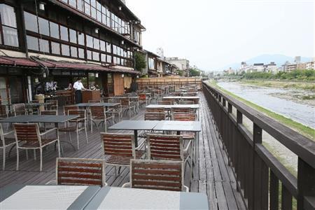 鴨川のせせらぎ、涼やかな風が感じられる川床。5~9月は川床でフレンチを楽しめる(雨天時は店内)=2015年6月17日、京都市下京区(志儀駒貴撮影)