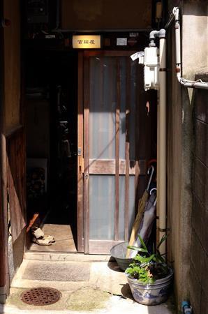 路地奥にある吉田屋料理店だけが時間が止まっているように思えるレトロな外観=2015年6月25日、京都市中京区(志儀駒貴撮影)