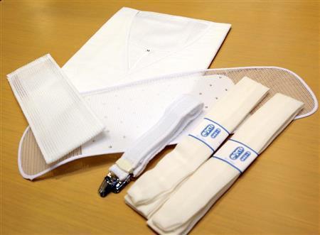 肌じゅばん、腰ひもなどのゆかた小物5点セット(6000円)=2015年7月2日、東京都中央区銀座(福島範和撮影)