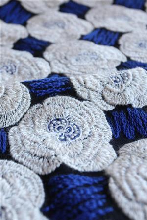 ステッチを幾重にも重ねた刺繍(ししゅう)でバラを表現したテキスタイル「Rosas」=2015年7月22日、東京都港区(荻窪佳撮影)