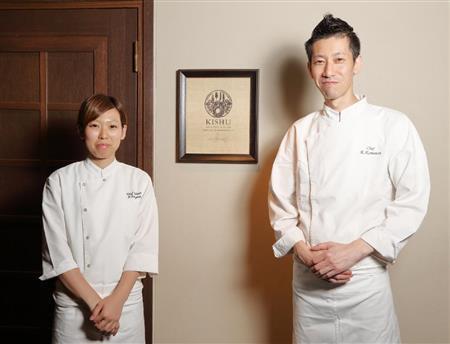 「また食べに来たくなる料理」をテーマに腕を振るう小松良平総料理長(右)と住吉知佳シェフパティシエ=2015年7月27日、京都市左京区(恵守乾撮影)