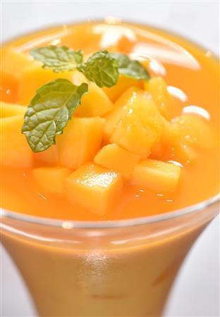 砂糖を加えない完熟マンゴーの驚異的な甘さとおいしさが楽しめる「マンゴープリン」(1120円)=2015年7月24日、京都市東山区(沢野貴信撮影)