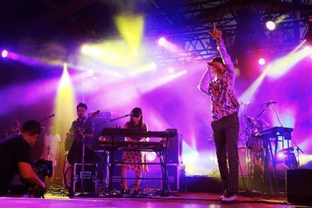 フジロック初参加となった大ブレーク中のバンド、ゲスの極み乙女。のパフォーマンス=2015年7月25日、新潟県南魚沼郡湯沢町(岡崎健志さん撮影)