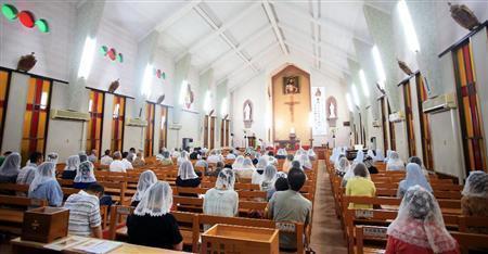 福江島にある福江教会では、毎日ミサが行われている。島民の約1割がキリスト教徒だという=2015年7月18日、長崎県五島市(鈴木健児撮影)