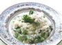 菜の花としらすのリゾット(作り方2)__水分が少なくなったら、残ったスープを少しずつ加え、菜の花、しらす、粉チーズ大さじ2を加え混ぜ、塩で味を調える。