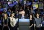 トム・ハーキン元米国上院議員(左)らと抱き合うヒラリー・クリントン氏。予想外の苦戦を強いられた=2016年2月2日、米アイオワ州デイモン市(ロイター)