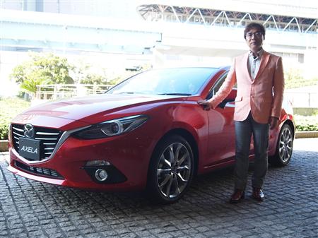 「アクセラは今年生誕10周年。マツダの生産台数の3割強を占める主力車種だ。3代目になる今回、デザインは高速で走るチーターのバランスの良さ、力強さを取り入れた。ドライビングは意のままに車を操れるよう、人間工学から心理学まで研究した。いまもっている最新の技術をクラスの概念を超えて惜しみなく投入した車だ。今年これ以上のものを出せといっても出せない」