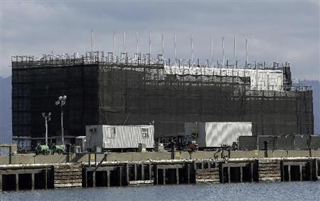 グーグルが米サンフランシスコ湾上で極秘に建設している巨大な4階建ての建造物。関係者以外近づけない厳重警戒ぶりで、グーグルは「人々が新技術を双方向で学べるスペースに使う」とコメントしたが、地元市民から不安な声が出ている(AP)【拡大】