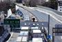 群馬県安中市と長野県軽井沢町を結ぶ国道18号線のバイパスでは、15日未明から車が立ち往生している=17日午後、長野県軽井沢町(桐原正道撮影)【拡大】