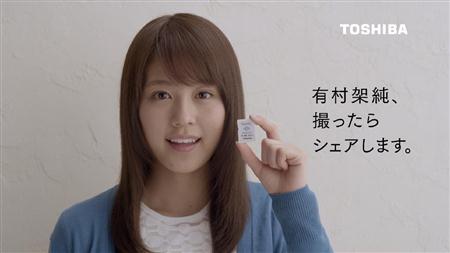 NHK連続テレビ小説「あまちゃん」で、主人公の母親役の娘時代を演じた女優の有村架純さんが、東芝の無線LAN搭載のSDHCメモリカード「FlashAir(フラッシュエア)」のCM「女子旅でシェア編」に出演している。幅広い層に商品を利用してもらうため、ナチュラルでフレッシュなイメージの有村さんを起用したという。