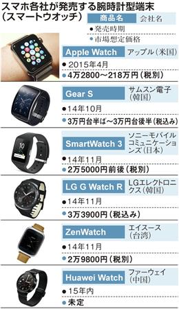 米アップルは9日、腕時計型端末「アップルウオッチ」を日米など9カ国・地域で4月24日に発売すると発表した。4月10日から予約を受け付ける。アップルとしては2010年発売のタブレット端末「iPad(アイパッド)」以来の新分野の製品となる。身につけることができるウエアラブル端末では、韓国のサムスン電子やソニーなどが腕時計型を発売済み。後発ながらも“真打ち”の登場で、期待ほどの成長は見せていないウエアラブル市場の起爆剤になると期待されている。
