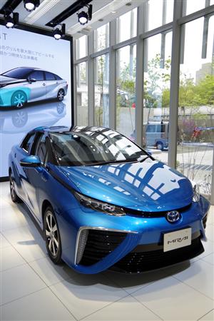 トヨタ自動車の燃料電池車「MIRAI」=東京都港区芝公園の「TOYOTAMIRAIショールーム」【拡大】