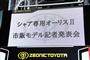 午後1時30分にシャア専用オーリスIIコンセプトの開発ストーリーをテーマにした動画が特設ステージの大型スクリーンに流され、そしてその動画が終わると、そのスクリーンには市販モデル記者発表会の文字が大きく映し出されます。