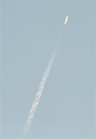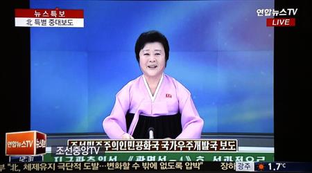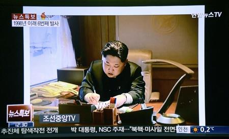 北朝鮮が事実上の長距離弾道ミサイルを発射した7日、首都平壌の平壌駅前では、「衛星打ち上げ」を伝える朝鮮中央テレビの「特別重大報道」を市民らが大型スクリーンで見守った。「完全成功」と報じられると、市民らは笑顔で拍手を送った。