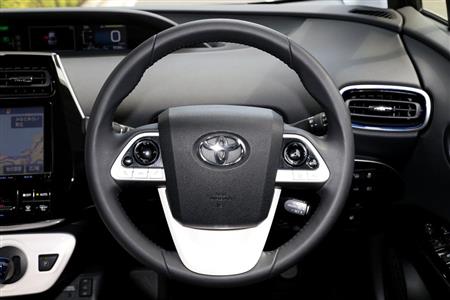4代目プリウスの室内にはなんとなく未来的な雰囲気が漂っている。直線と曲線を巧みに織り交ぜ、ピアノブラック調に加工した光沢のあるセンターコンソール。ブルーで縁取ったエアコンの吹き出し口や、横長のグラフィックメーターがそう感じさせるのだろうか。
