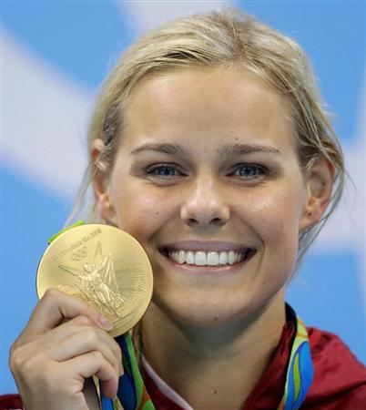 プラチナブロンドに青い瞳の美女スイマーは、五輪開幕後、自身の「インスタグラム」(画像投稿サイト)に、大衆紙の企画で撮影した自身のヌード写真をアップ。「どれが好き?」と問いかけるおちゃめな一面をのぞかせている。
